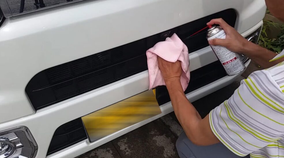 - 乾いた布にスプレー