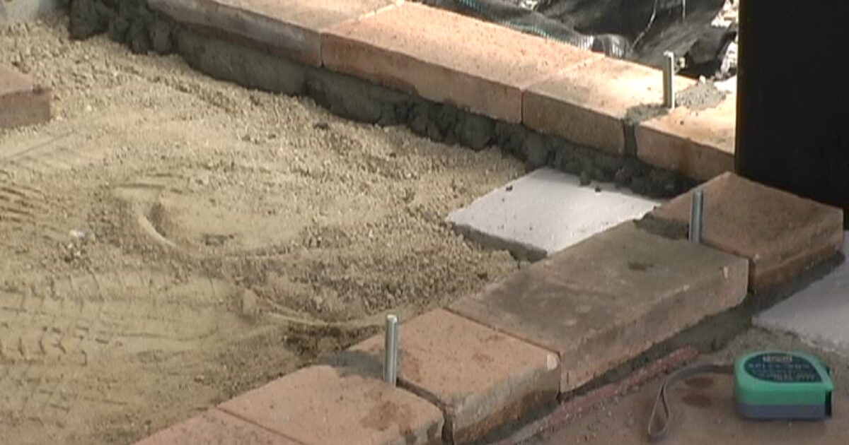 この写真は、基礎となるレンガを水平に設置した状態です。